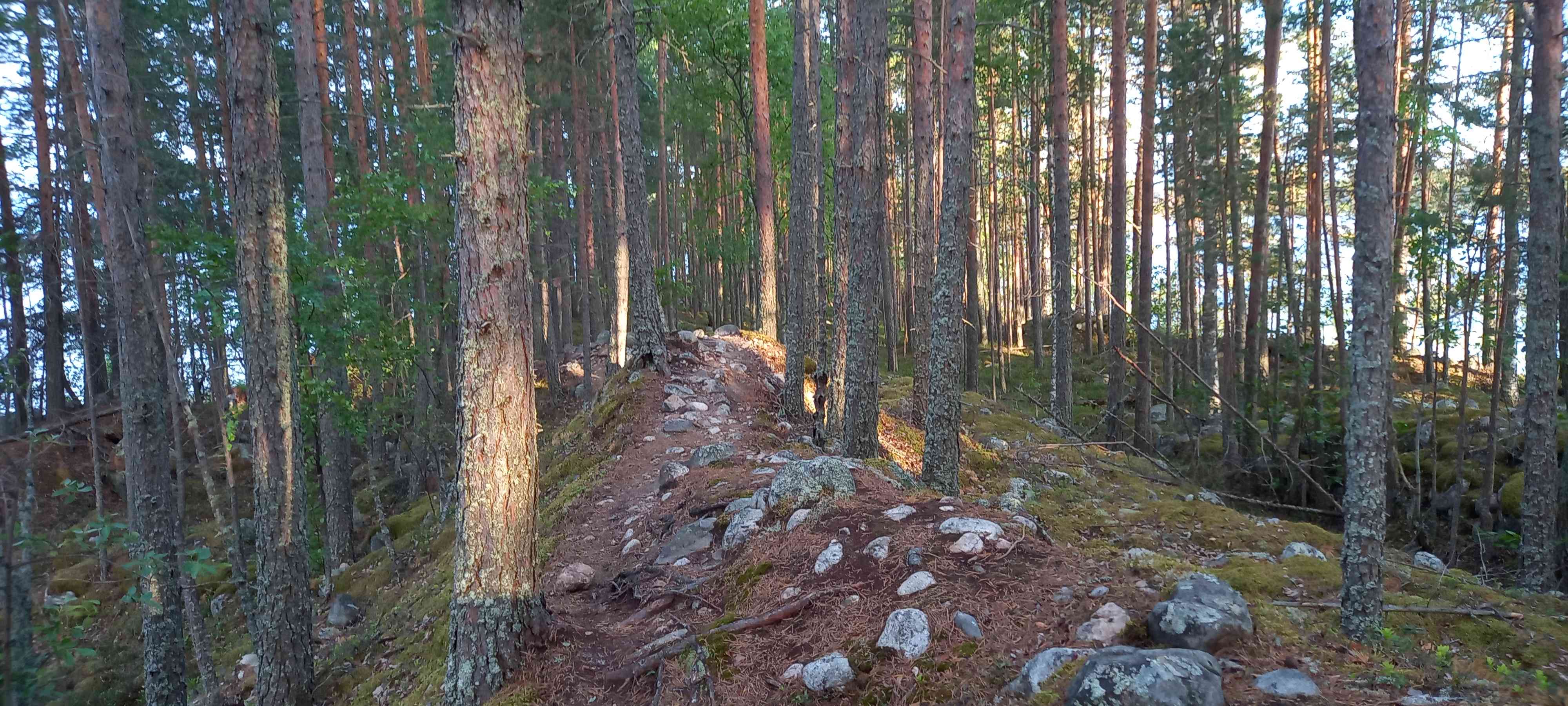 ”Pieni polku metsän halki vie”……Kolilla on laaja polkuverkosto, mutta sen sijaan harmi, että kirjanpainajan toukka on tuhonnut laajalti kansallispuiston kuusikoita. Toisaalta se on osa luonnon normaalia kiertokulkua.